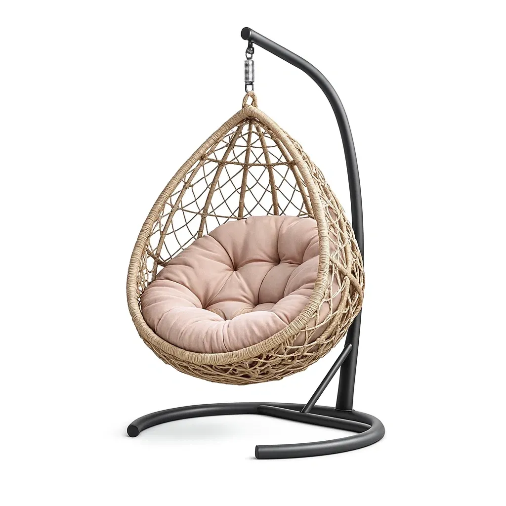 Hanging egg chair Rattan with Stand Beige Cushion Steel Frame