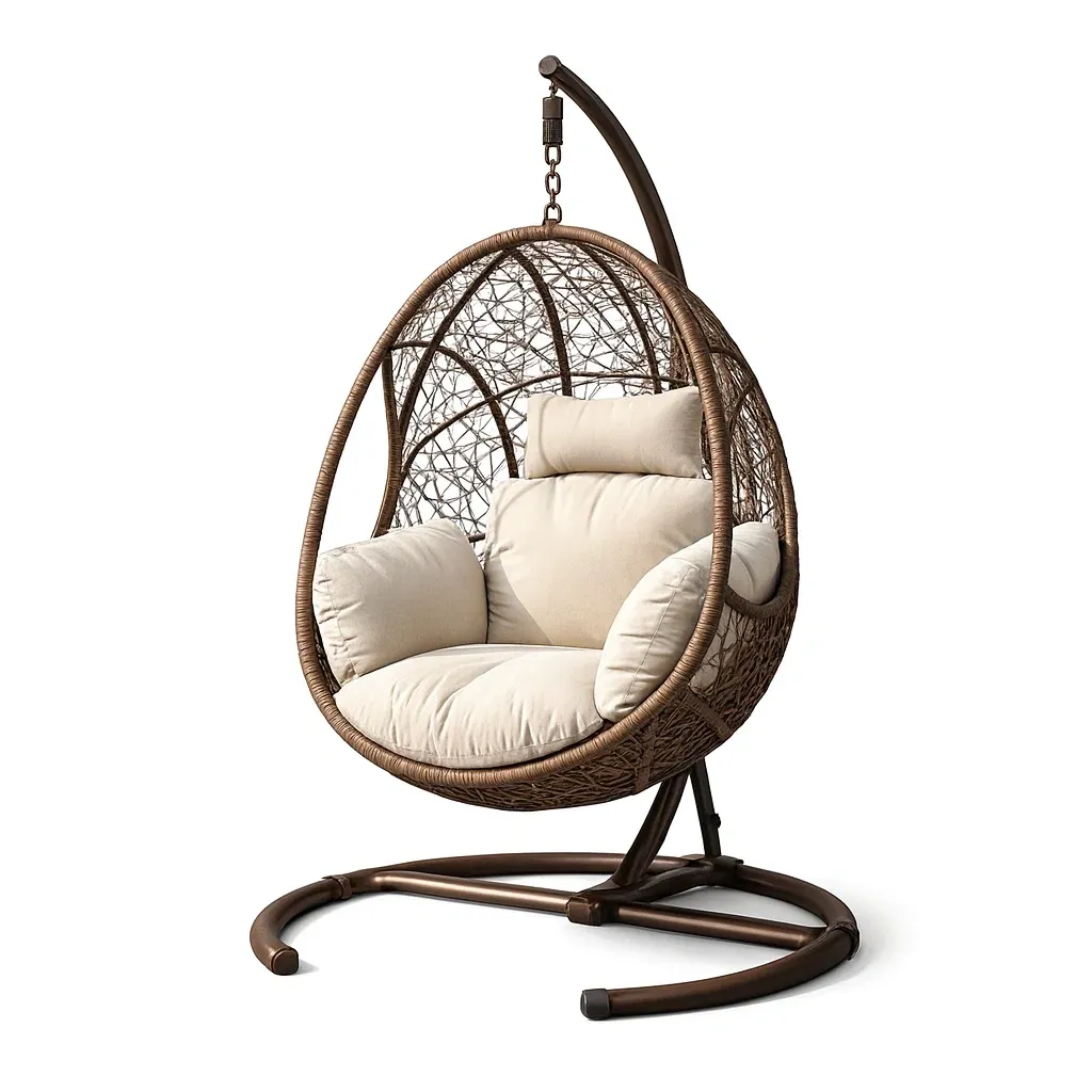 Hanging egg chair Wicker and Steel Outdoor with Beige Cushions