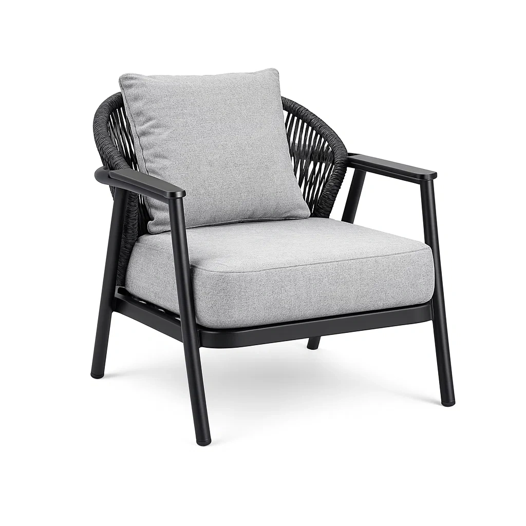 Leisure chair Black Aluminium with Grey Polyester Cushions