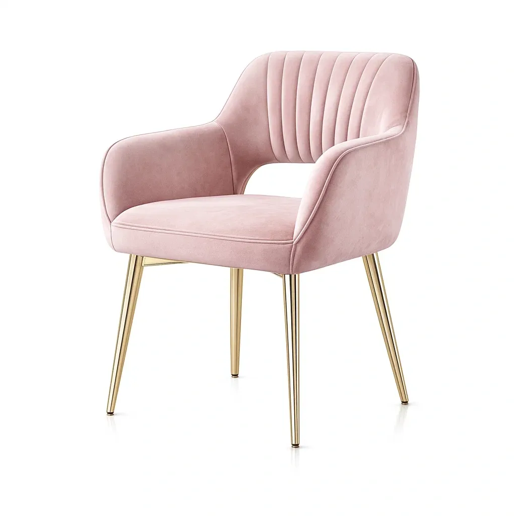 Material: Upholstered in velvet fabric with metal frame and legs.