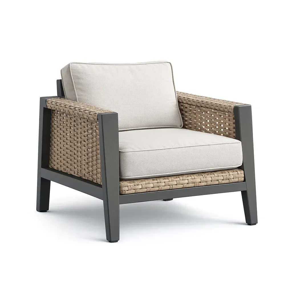 Leisure chair Wicker with Cushions Beige Aluminium Polyester Outdoor 80cm x 75cm x 85cm