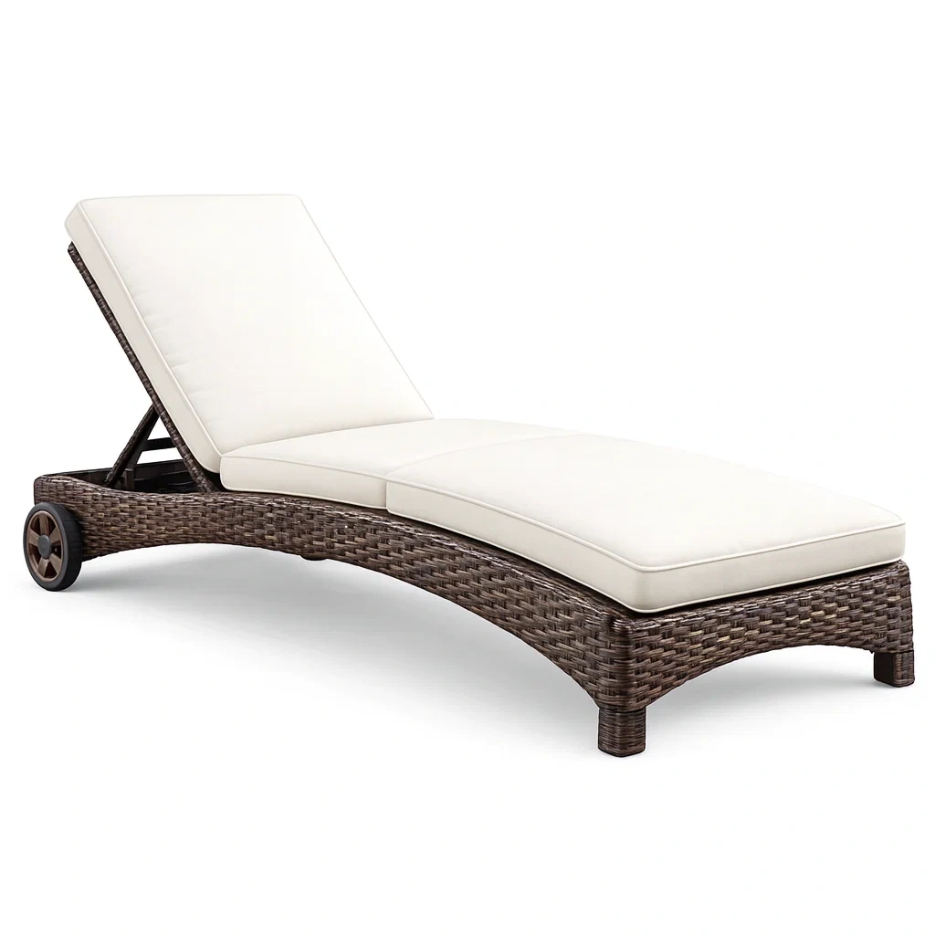 Reclining Chaise Lounge Outdoor Adjustable with White Olefin Cushions and Rattan Frame